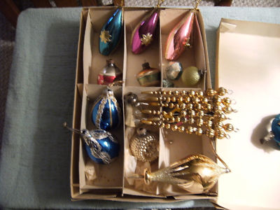 Title (ebay affiliate link): Box of Vintage Christmas Ornaments + Mercury Icicles