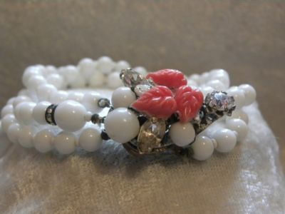 VINTAGE 1940's MILKGLASS BRACELET, GORGEOUS CLASP