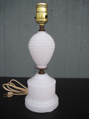 Vintage Hobnail Milk Glass & Brass Table Lamp Excellent