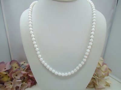 VINTAGE WHITE GLASS BARREL BEADS NECKLACE MILK JEWELRY