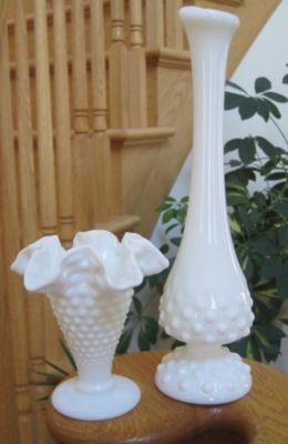 2 Hobnail Fenton White Milk Glass Fluted Vase + bud