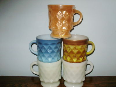 5 FIRE-KING ANCHOR HOCKING KIMBERLY MILK GLASS MUG LOT