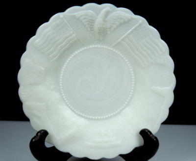Antique Milk Glass Plate w/ American Flag and Eagle