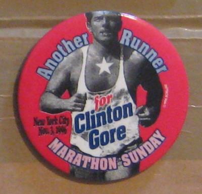 Bill Clinton campaign button pin New York Marathon