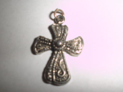 Antique Silver Tone Hand Etched Holy Cross Pendant Nice
