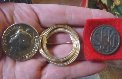 LOT OF 2 BROOCHES AND A TAC SYTLE PIN ANTIQUE?