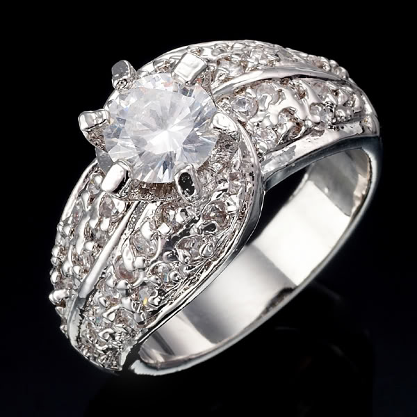 Antique Bridal White Sapphire Silver Ring Size 8