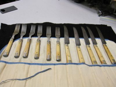 Title (ebay affiliate link): UNITED STATES CUTLERY BONE HANDLE FORK & KNIFE SET NICE