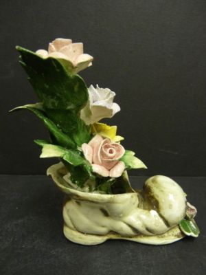 Nuova Capodimonte Porcelain Old Boot Flower Figurine