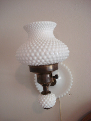 ANTIQUE HOBNAIL WALL MOUNT BEDROOM LAMP MILKGLASS