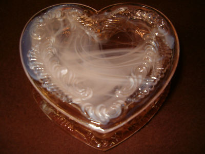 DEPRESSION PINK ART GLASS HEART POWDER JEWELRY BOX MILK