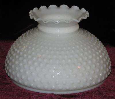 Vtg White Milk Glass Ruffled Hobnail Oil Lamp Shade 10'