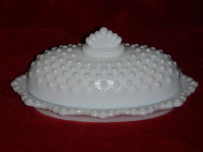 FENTON HOBNAIL MILK GLASS COVERD BUTTER DISH MUST SEE