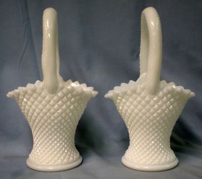 2 VINTAGE WESTMORELAND MILK GLASS ENGLISH HOBNAIL BASK