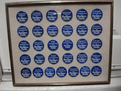 Title (ebay affiliate link): FRAMED set of 31 REAGAN/BUSH ETHNIC Campaign Pins