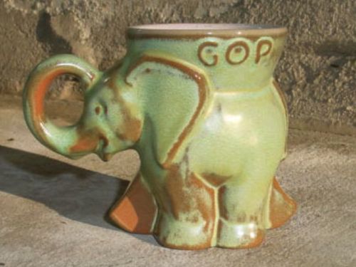 1972 GOP FRANKOMA Pottery Green Elephant