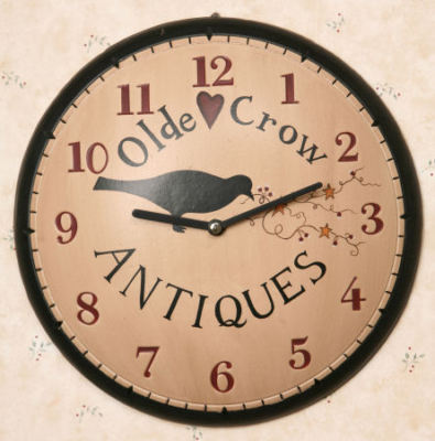 Primitive Wooden Olde Crow Antiques Painted Clock
