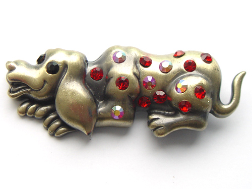 Title (ebay affiliate link): Antique Finish Ruby Rhinestone Happy Dog Pin Brooch