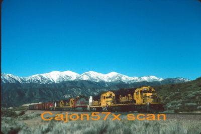 Original slide- ATSF SD40-2 #5182 & Train/Cajon Pass