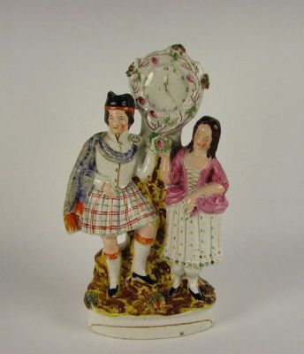 Title (ebay affiliate link): Antique Staffordshire Figurine Flatback w/couple Clock