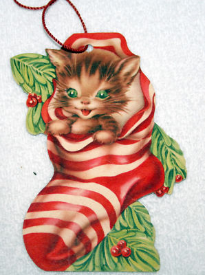 Title (ebay affiliate link): World War II USA KITTY IN STOCKING. Paper Xmas Orn.