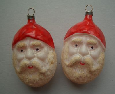 Title (ebay affiliate link): 2 OLD BLOWN GLASS SANTA HEADS CHRISTMAS ORNAMENTS