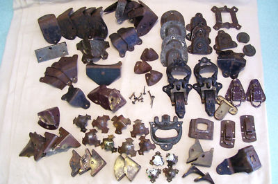 Title (ebay affiliate link): 75 PC Antique Trunk Hardware Latches Corners Brass Iron