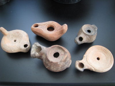Title (ebay affiliate link): LOT OF 5 ROMAN/HOLYLAND OIL LAMPS TERRACOTTA POTTERY