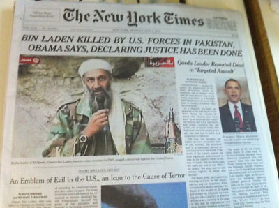 Title (ebay affiliate link): THE NEW YORK TIMES MAY 2, 2011 OSAMA BIN LADEN DEAD!!!