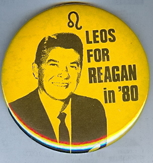 LEOS FOR REAGAN 1980 POLITICAL PIN BUTTON