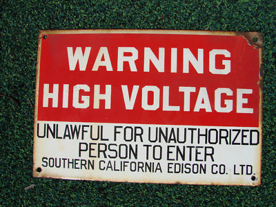 Metal & Porcelain High Voltage Sign - Antique, Old