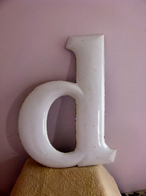 VINTAGE WHITE 24" PORCELAIN ENAMEL LETTER "d"