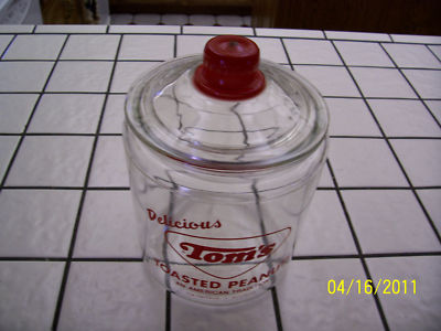 Vintage "TOM's" Glass Peanut Jar with Lid - Not a Repro