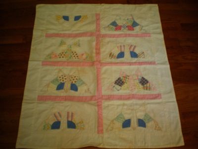 VINTAGE BUTTERFLY BABY DOLL QUILT 36" X 32"
