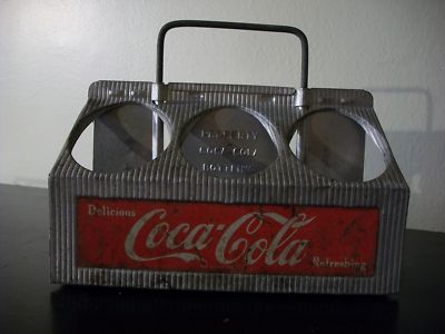 Title (ebay affiliate link): Funky vintage Coke aluminum 6 pack bottle carrier 50s