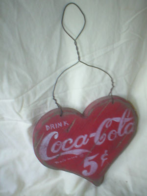 Title (ebay affiliate link): Old Crafted Coca-Cola Heart Sign w/ Twisted Wire hook