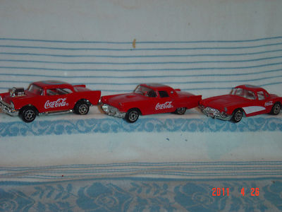 Title (ebay affiliate link): 3 COCA COLA CARS 57 CHEVY 57 THUNDERBIRD 58 CORVETTE