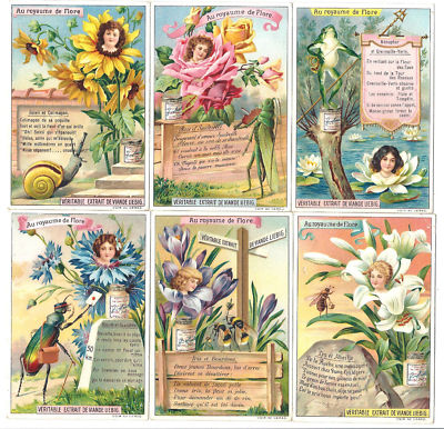 Set 6 Liebig extract trading card flora kingdom flower