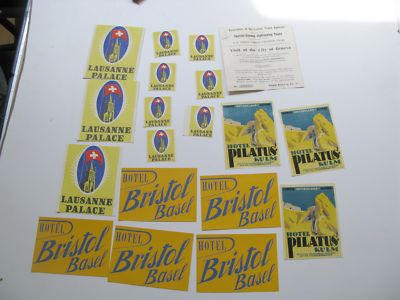 17 RARE SWISS VINTAGE LUGGAGE STICKERS 3 SIGNED "ERNST