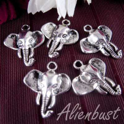 Title (ebay affiliate link): 22 PCS ANTIQUE SILVER 2.5CM ELEPHANT HEAD CHARM BEADS