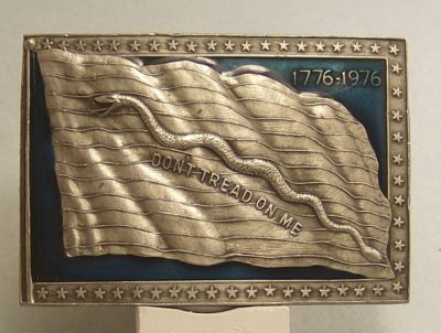 Title (ebay affiliate link): Rare Bergamot pewter & enamel buckle Don't Tread on Me