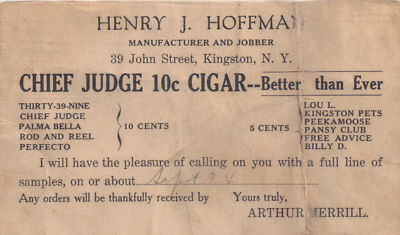 ALTON PARKER CHIEF JUDGE 10c CIGAR KINGSTON NEW YORK.