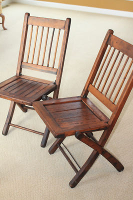 (2) Vintage Wooden Slat Folding Chairs