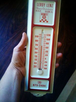 LEROY LENZ BOWES SEAL FAST RR#1 TIN THERMOMETER