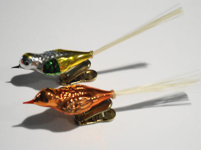 2 Vintage Mercury Glass Bird Clip Ornaments
