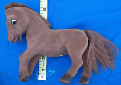 VINTAGE FLOCKED TOY HORSE on WHEELS ANTIQUE TOY