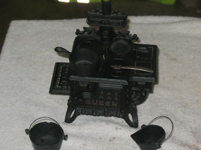 vintage miniature queen cast iron stove w/ extras!
