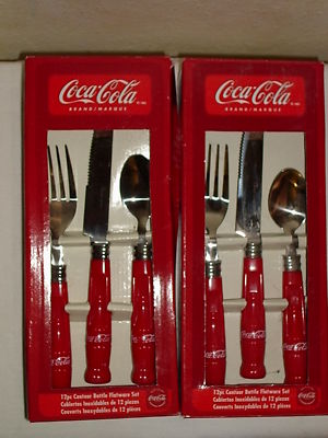 Title (ebay affiliate link): COCA-COLA COKE 24 PIECE CONTOUR BOTTLE FLATWARE NIB