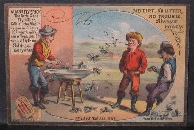 ALLAN'S FLY BRICK Trade Card Niagara Street Drug store
