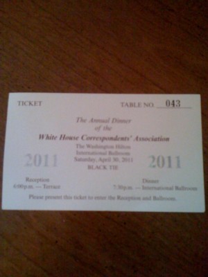 Title (ebay affiliate link): 2011 White House Correspondents Dinner Ticket - Obama